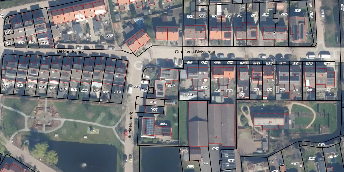 Gebruik de zoekbalk of klik op een perceel om informatie over het perceel te bekijken.