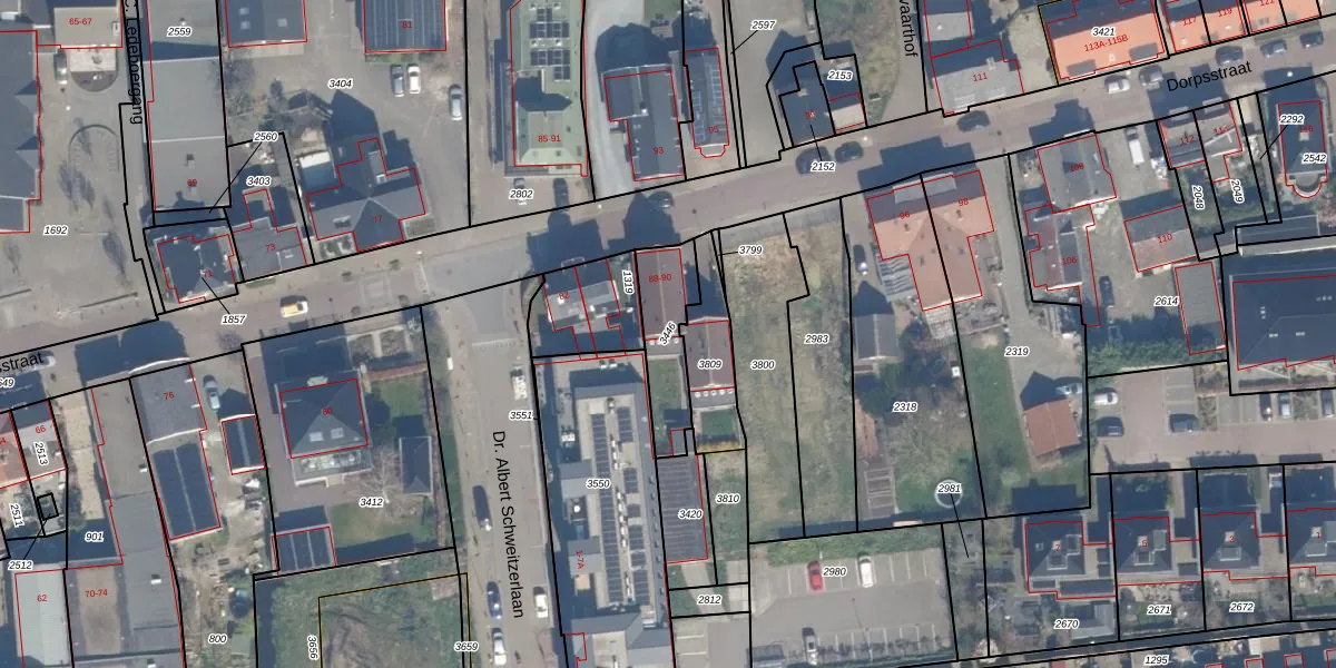 Gebruik de zoekbalk of klik op een perceel om informatie over het perceel te bekijken.