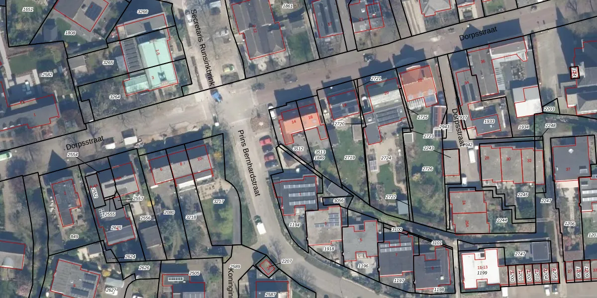 Gebruik de zoekbalk of klik op een perceel om informatie over het perceel te bekijken.