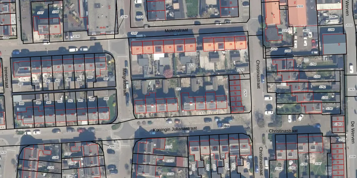 Gebruik de zoekbalk of klik op een perceel om informatie over het perceel te bekijken.