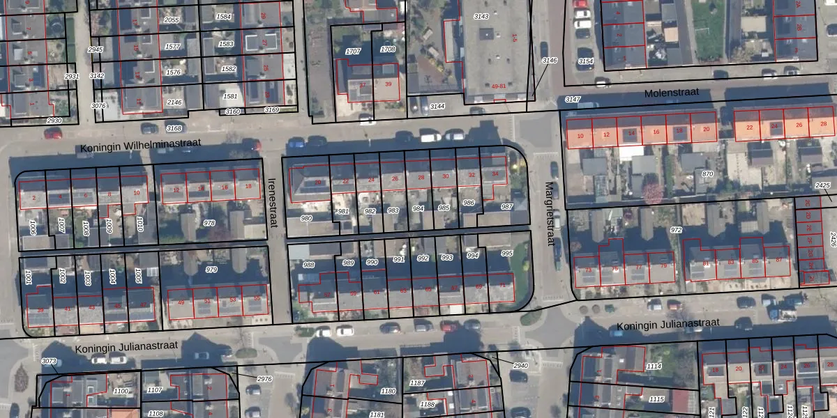 Gebruik de zoekbalk of klik op een perceel om informatie over het perceel te bekijken.