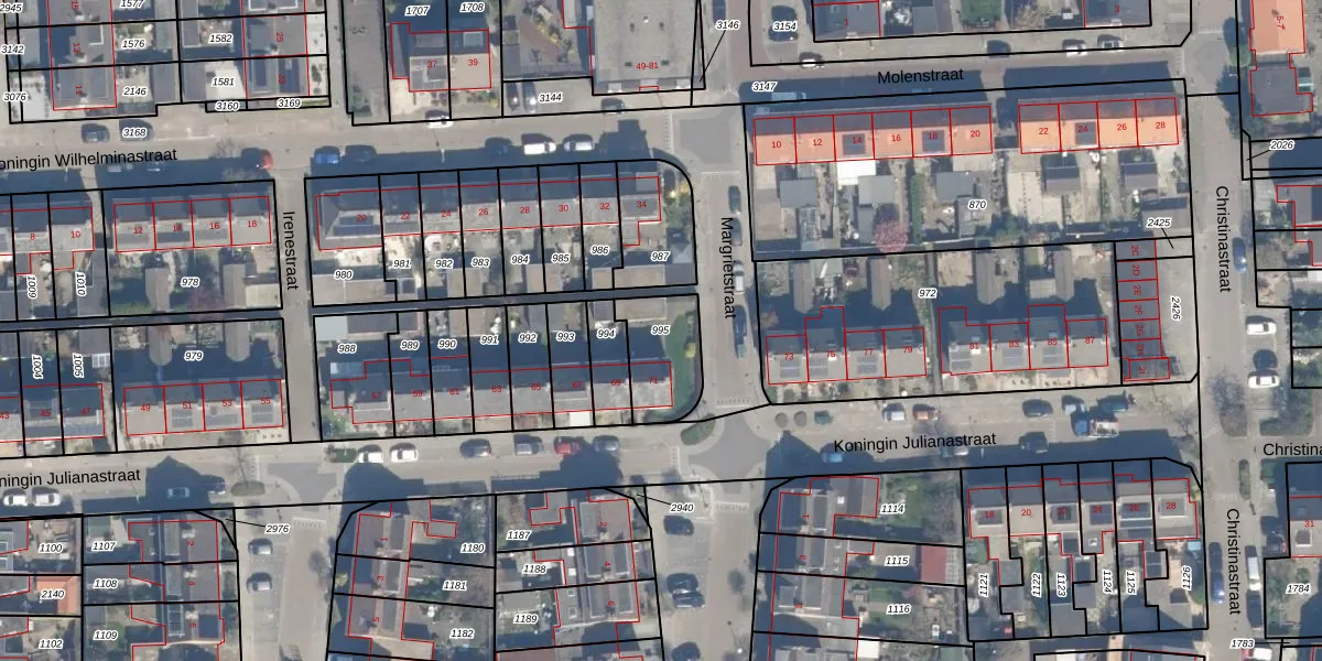 Gebruik de zoekbalk of klik op een perceel om informatie over het perceel te bekijken.