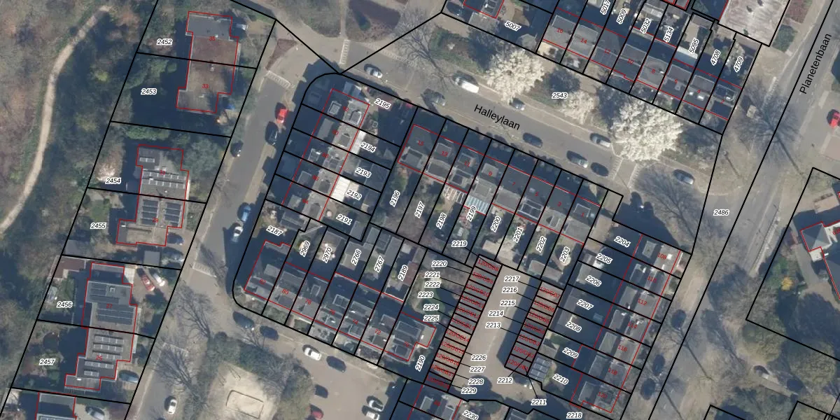 Gebruik de zoekbalk of klik op een perceel om informatie over het perceel te bekijken.