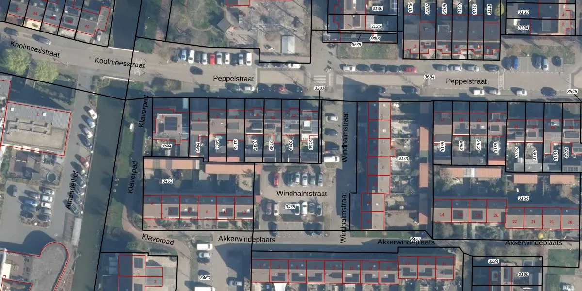 Gebruik de zoekbalk of klik op een perceel om informatie over het perceel te bekijken.