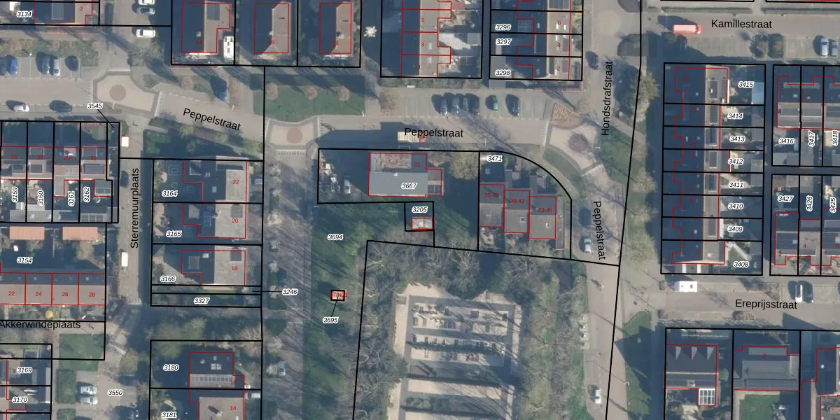 Gebruik de zoekbalk of klik op een perceel om informatie over het perceel te bekijken.