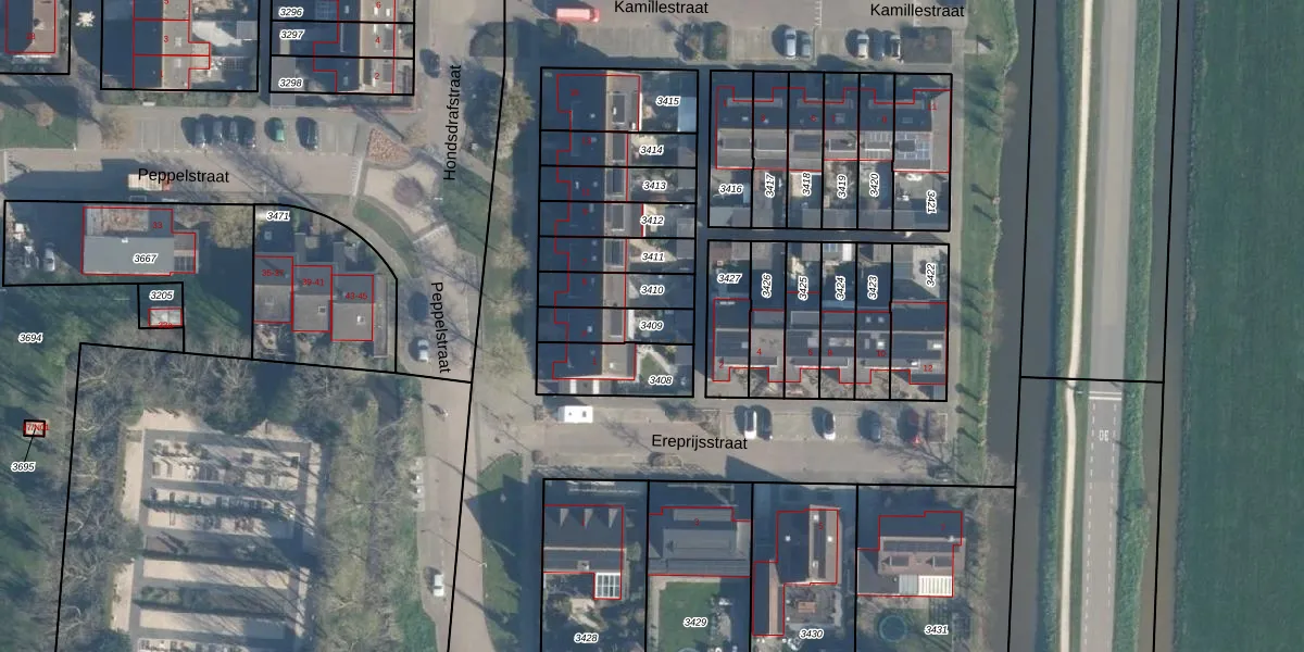 Gebruik de zoekbalk of klik op een perceel om informatie over het perceel te bekijken.