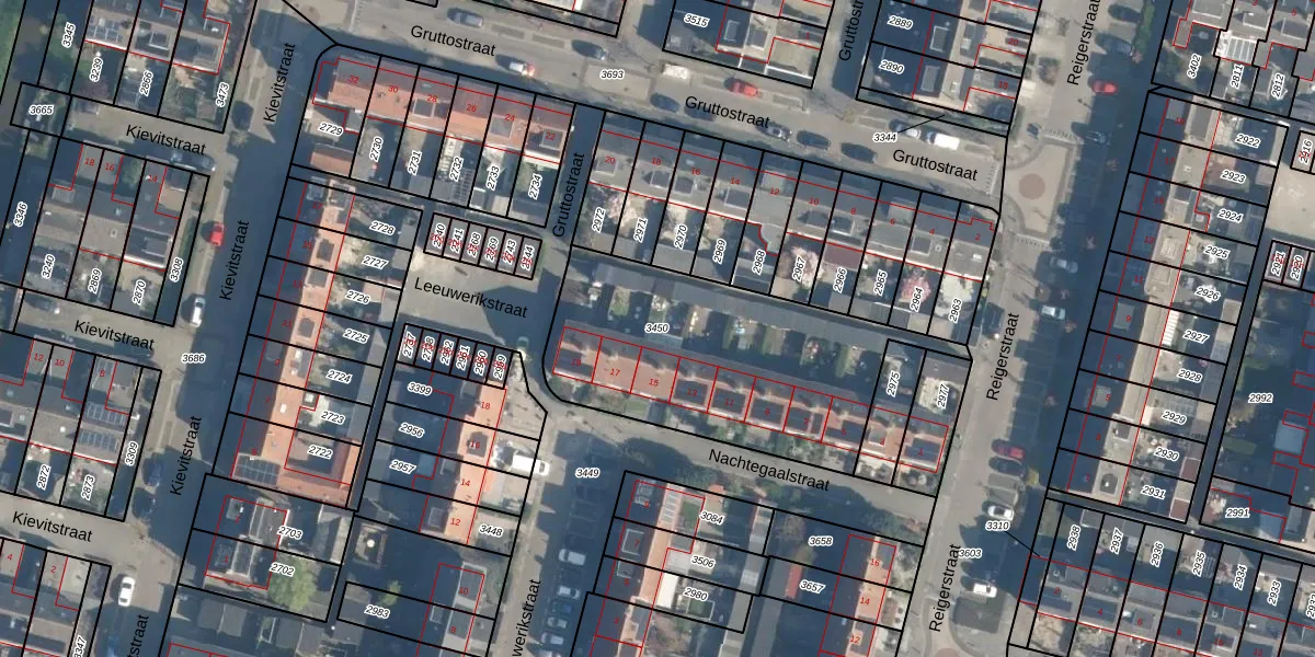 Gebruik de zoekbalk of klik op een perceel om informatie over het perceel te bekijken.
