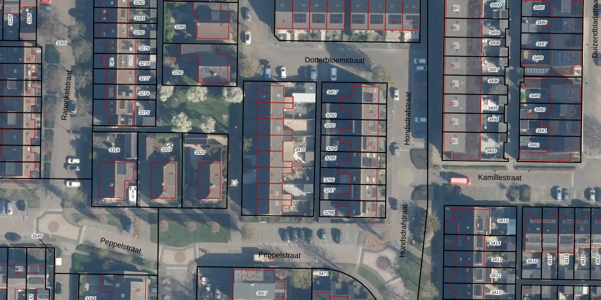 Gebruik de zoekbalk of klik op een perceel om informatie over het perceel te bekijken.