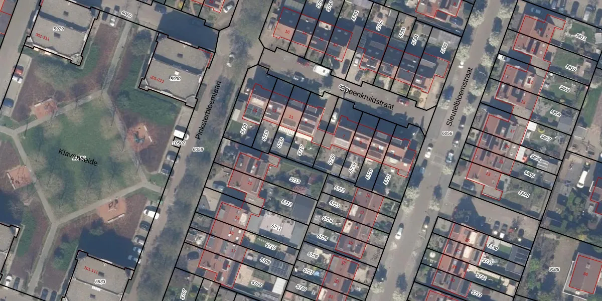Gebruik de zoekbalk of klik op een perceel om informatie over het perceel te bekijken.