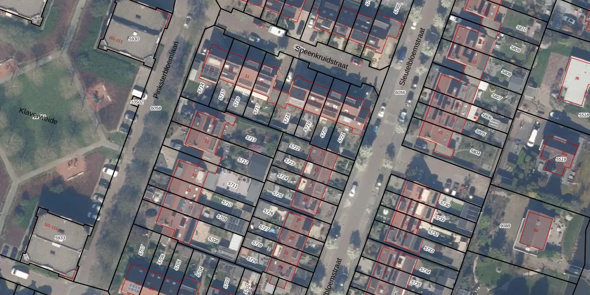 Gebruik de zoekbalk of klik op een perceel om informatie over het perceel te bekijken.