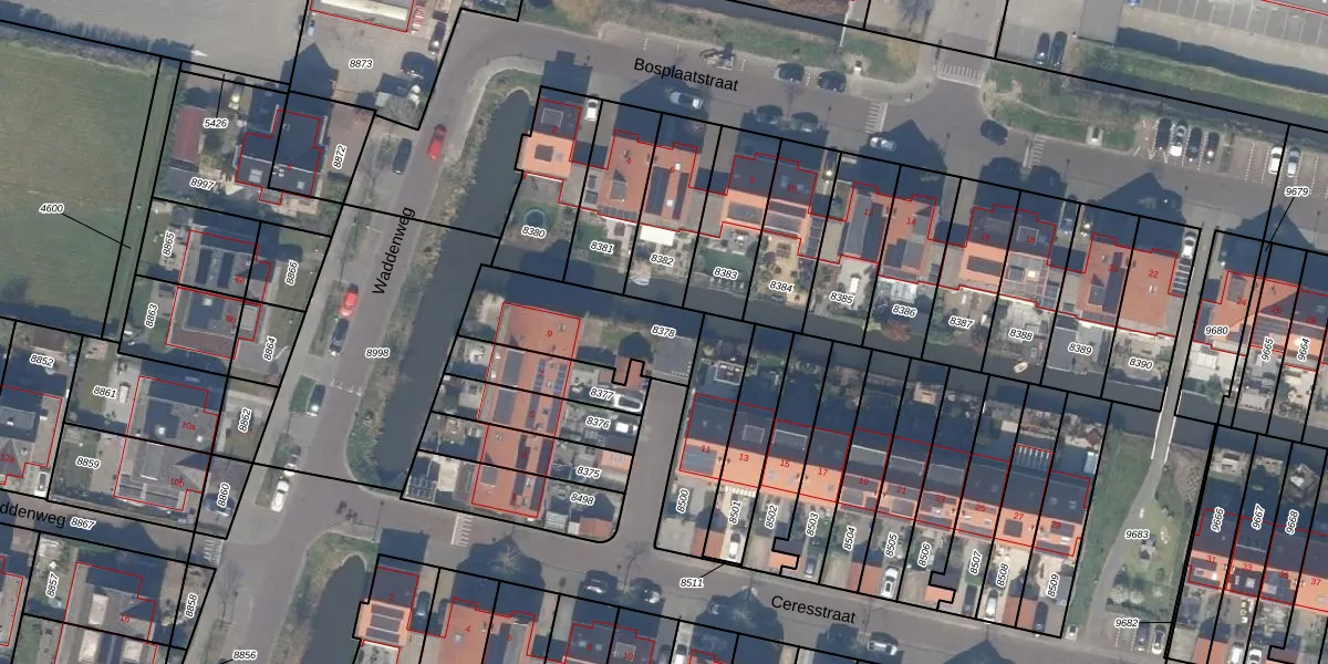 Gebruik de zoekbalk of klik op een perceel om informatie over het perceel te bekijken.