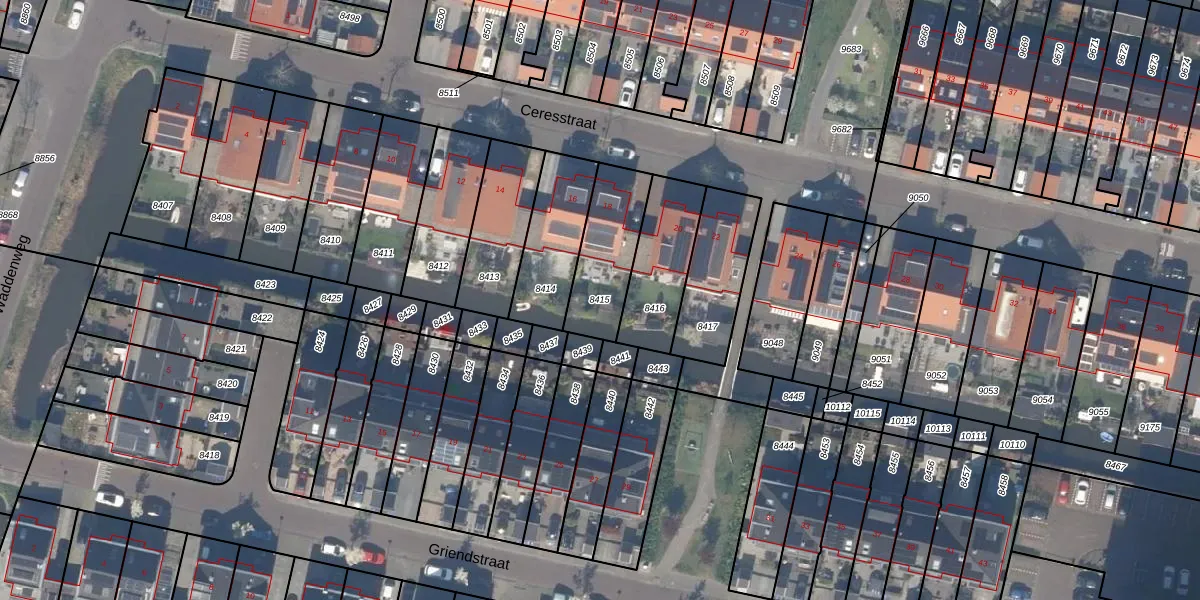 Gebruik de zoekbalk of klik op een perceel om informatie over het perceel te bekijken.