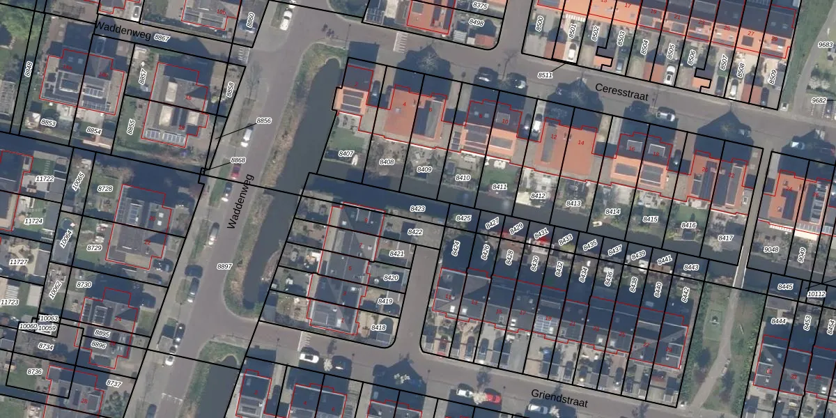 Gebruik de zoekbalk of klik op een perceel om informatie over het perceel te bekijken.