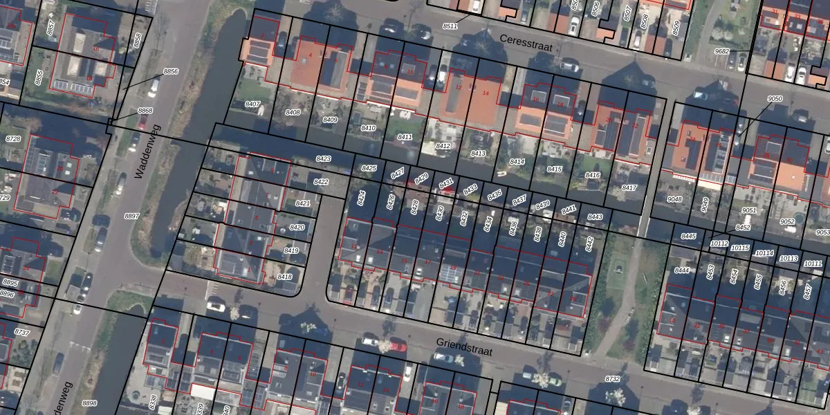 Gebruik de zoekbalk of klik op een perceel om informatie over het perceel te bekijken.
