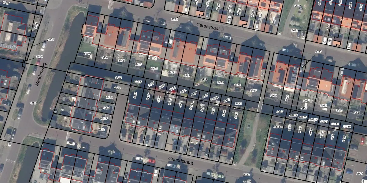 Gebruik de zoekbalk of klik op een perceel om informatie over het perceel te bekijken.