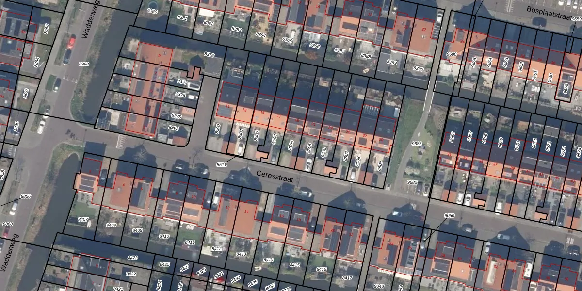 Gebruik de zoekbalk of klik op een perceel om informatie over het perceel te bekijken.