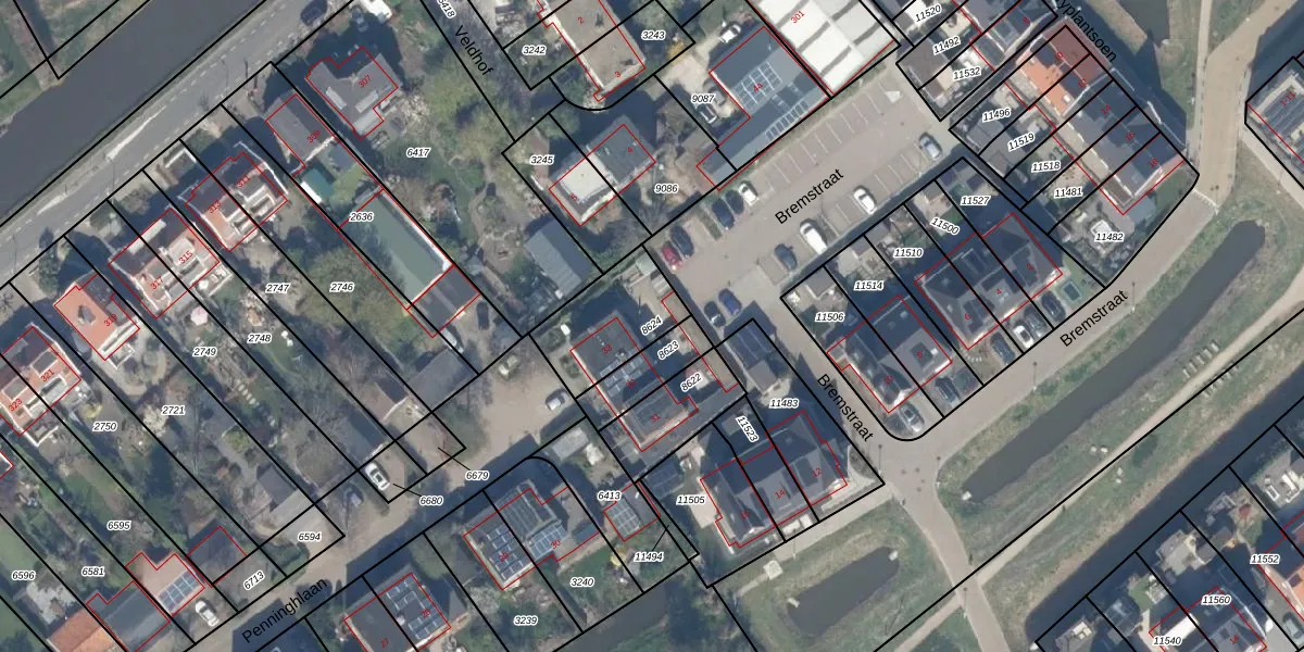 Gebruik de zoekbalk of klik op een perceel om informatie over het perceel te bekijken.