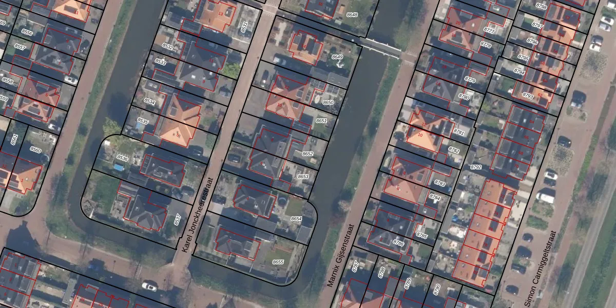Gebruik de zoekbalk of klik op een perceel om informatie over het perceel te bekijken.