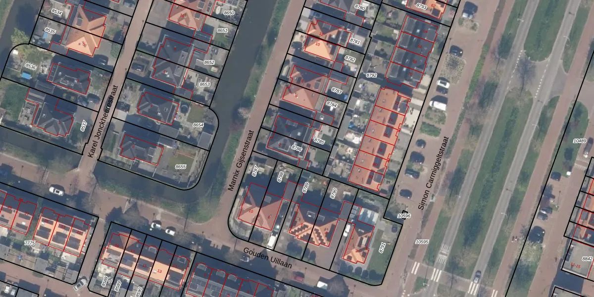 Gebruik de zoekbalk of klik op een perceel om informatie over het perceel te bekijken.