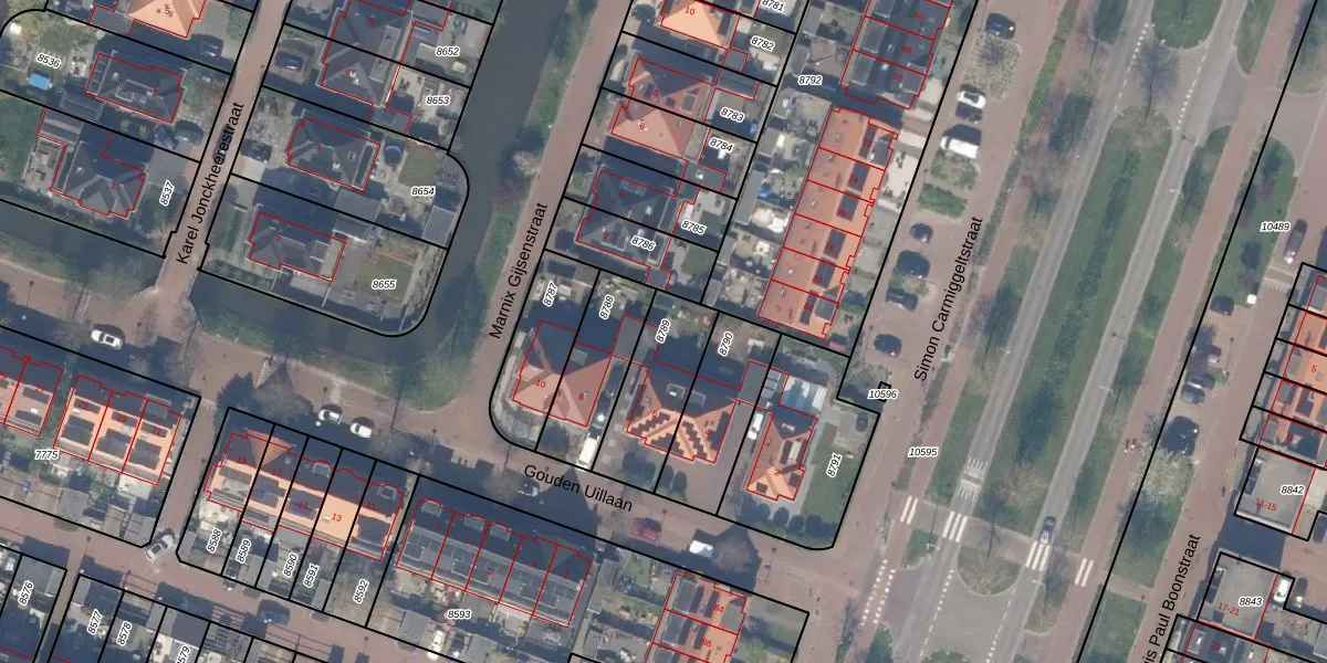 Gebruik de zoekbalk of klik op een perceel om informatie over het perceel te bekijken.