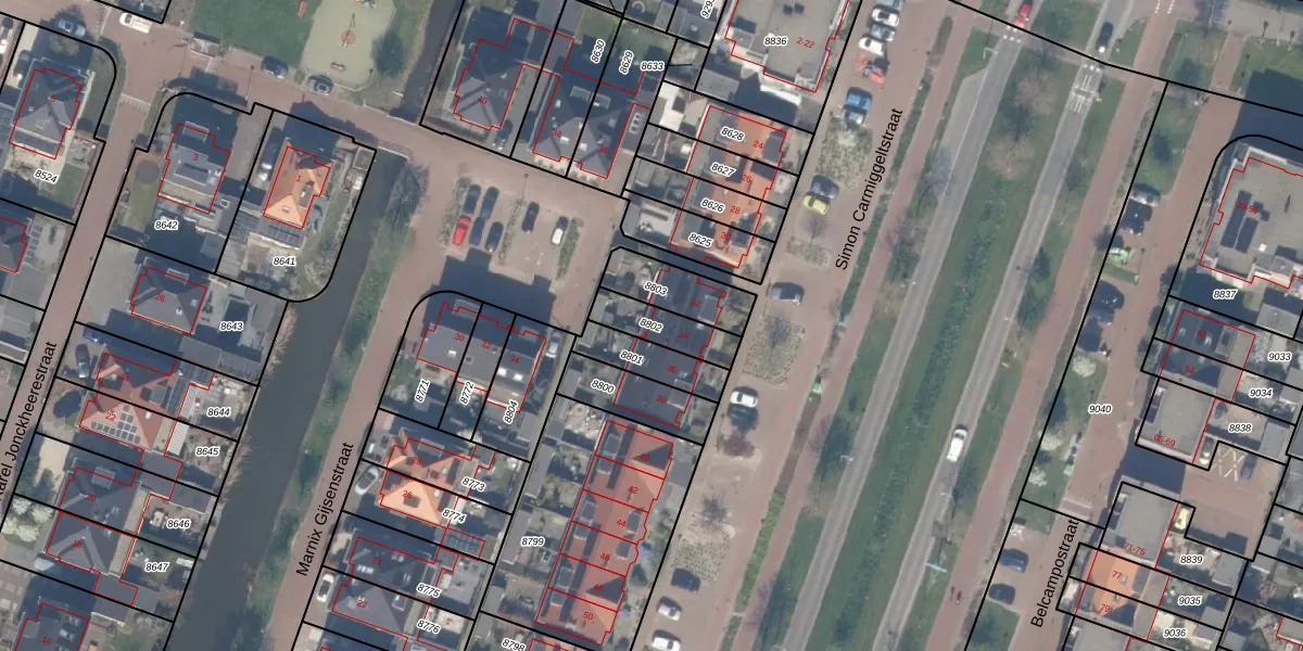 Gebruik de zoekbalk of klik op een perceel om informatie over het perceel te bekijken.