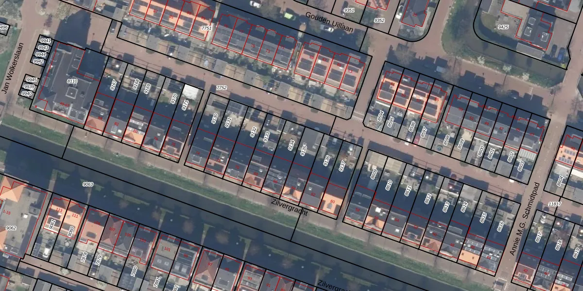 Gebruik de zoekbalk of klik op een perceel om informatie over het perceel te bekijken.