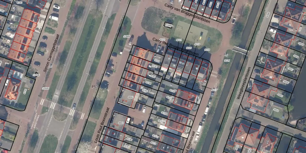 Gebruik de zoekbalk of klik op een perceel om informatie over het perceel te bekijken.