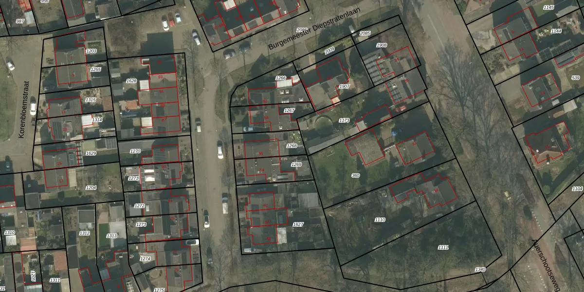 Gebruik de zoekbalk of klik op een perceel om informatie over het perceel te bekijken.
