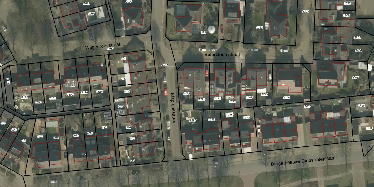 Gebruik de zoekbalk of klik op een perceel om informatie over het perceel te bekijken.