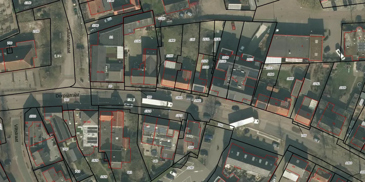 Gebruik de zoekbalk of klik op een perceel om informatie over het perceel te bekijken.