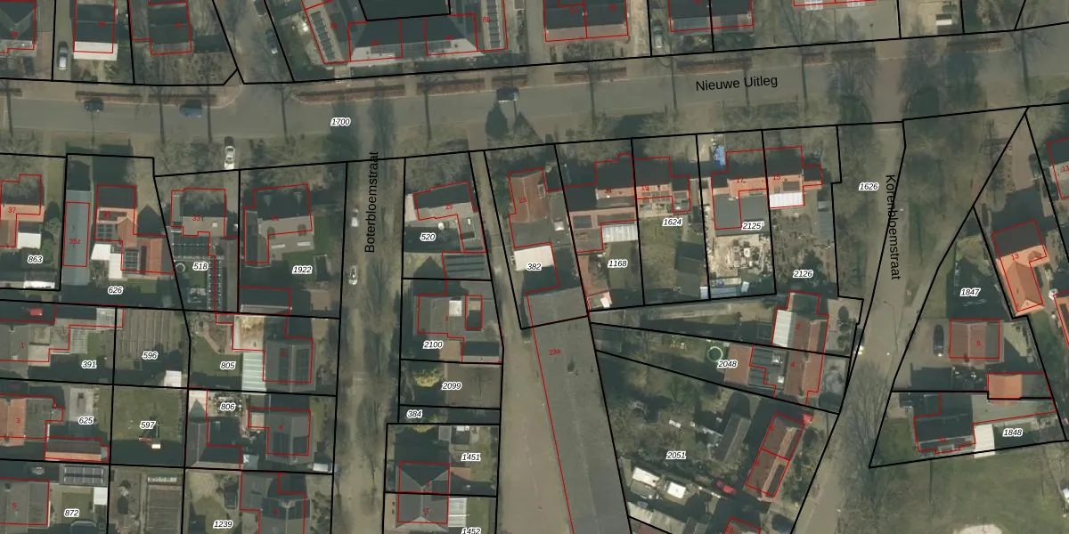 Gebruik de zoekbalk of klik op een perceel om informatie over het perceel te bekijken.