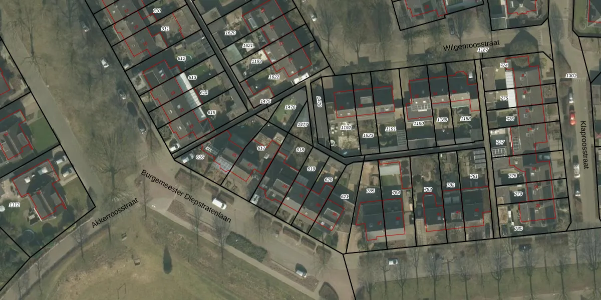 Gebruik de zoekbalk of klik op een perceel om informatie over het perceel te bekijken.