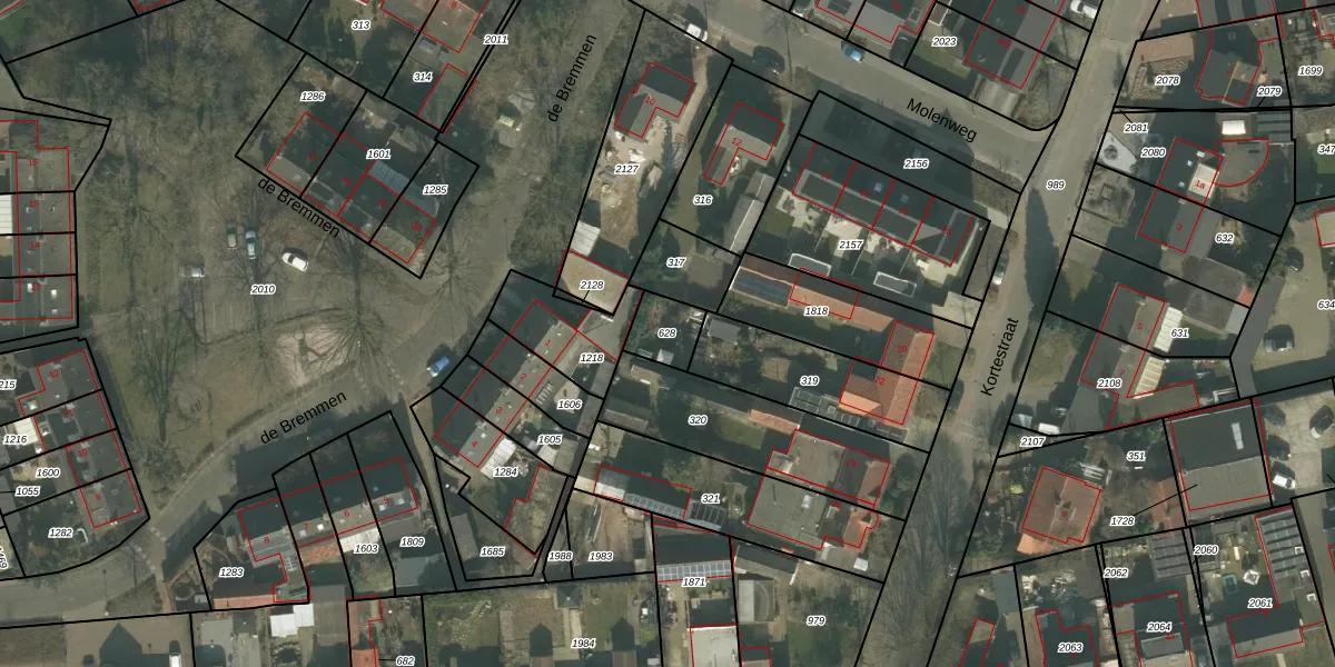 Gebruik de zoekbalk of klik op een perceel om informatie over het perceel te bekijken.