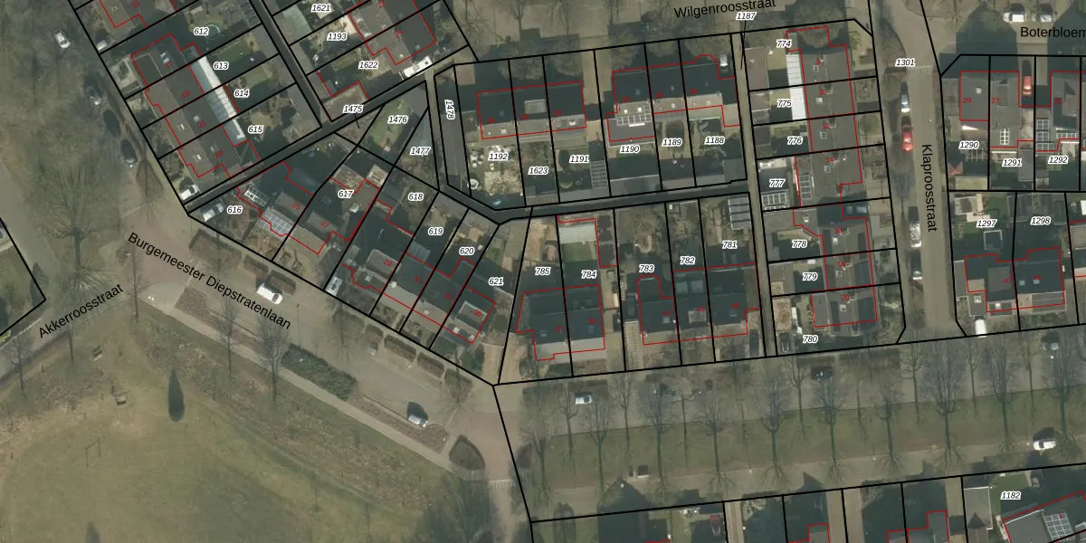 Gebruik de zoekbalk of klik op een perceel om informatie over het perceel te bekijken.