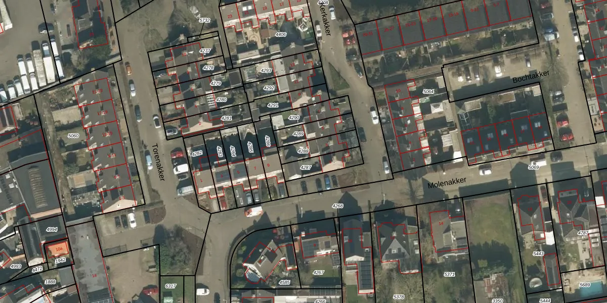 Gebruik de zoekbalk of klik op een perceel om informatie over het perceel te bekijken.