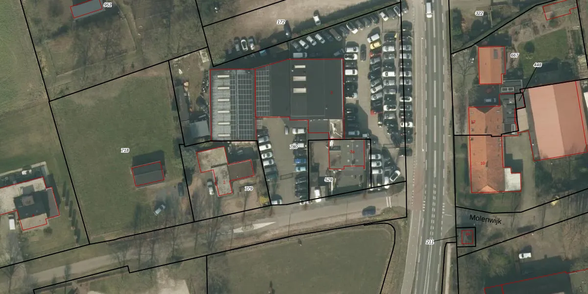 Gebruik de zoekbalk of klik op een perceel om informatie over het perceel te bekijken.