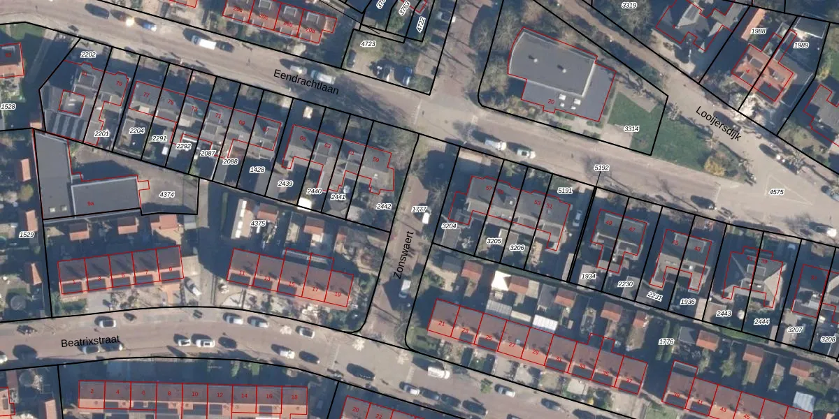 Gebruik de zoekbalk of klik op een perceel om informatie over het perceel te bekijken.
