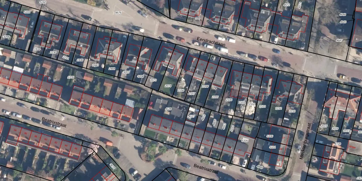 Gebruik de zoekbalk of klik op een perceel om informatie over het perceel te bekijken.