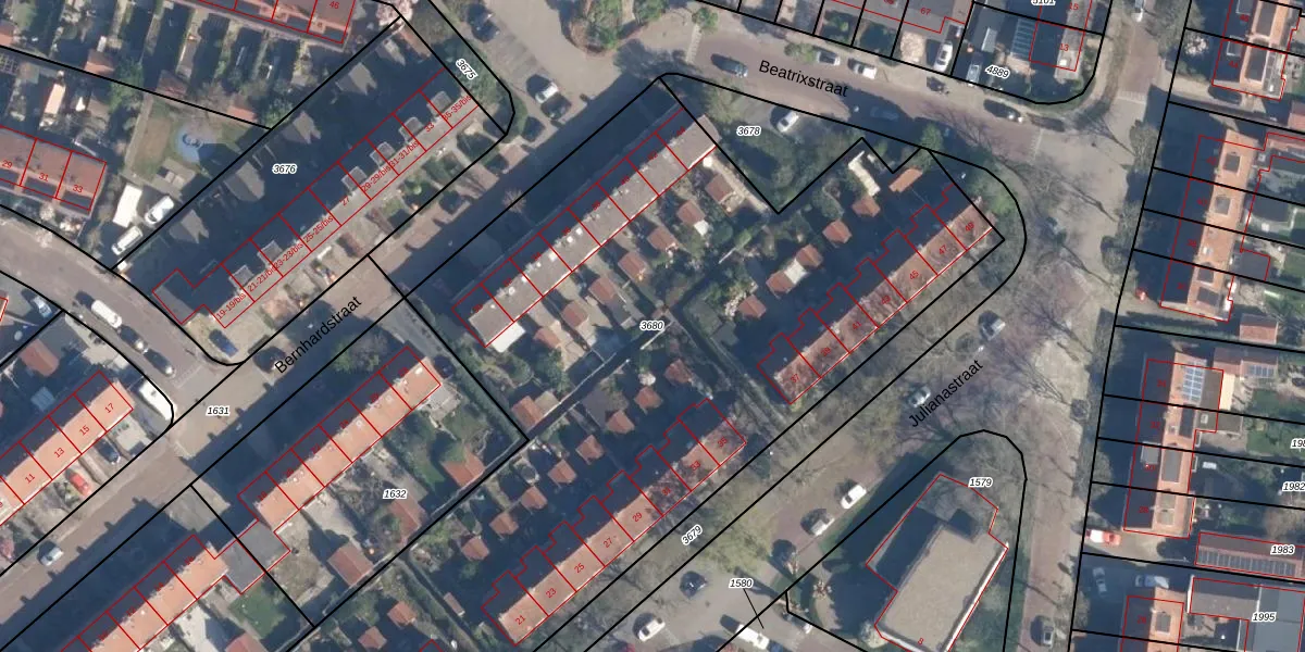 Gebruik de zoekbalk of klik op een perceel om informatie over het perceel te bekijken.