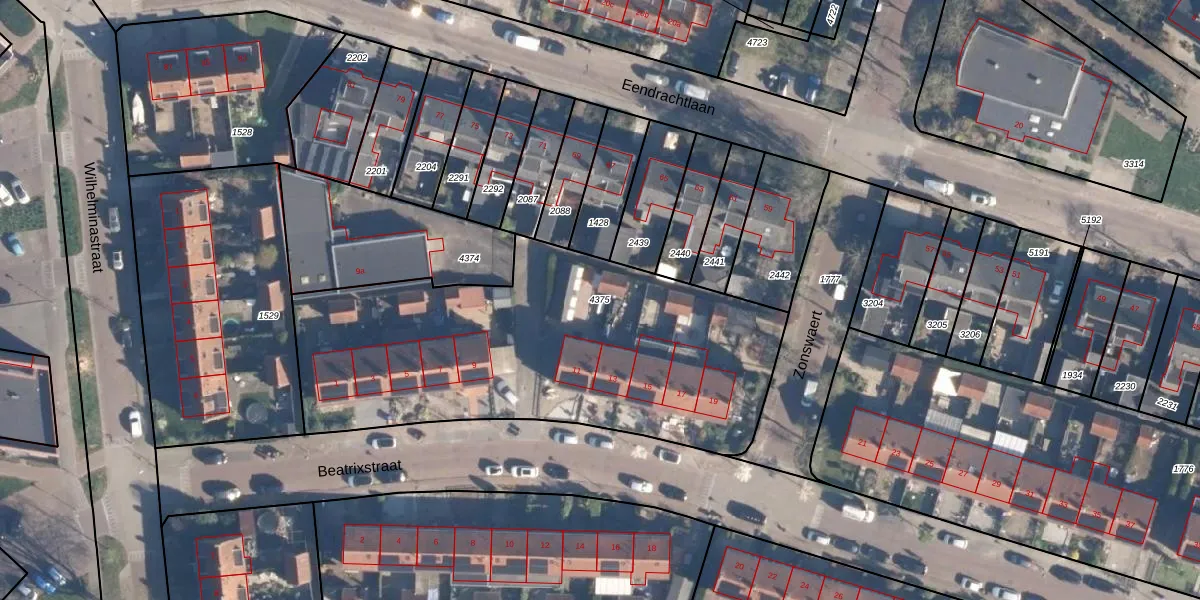 Gebruik de zoekbalk of klik op een perceel om informatie over het perceel te bekijken.