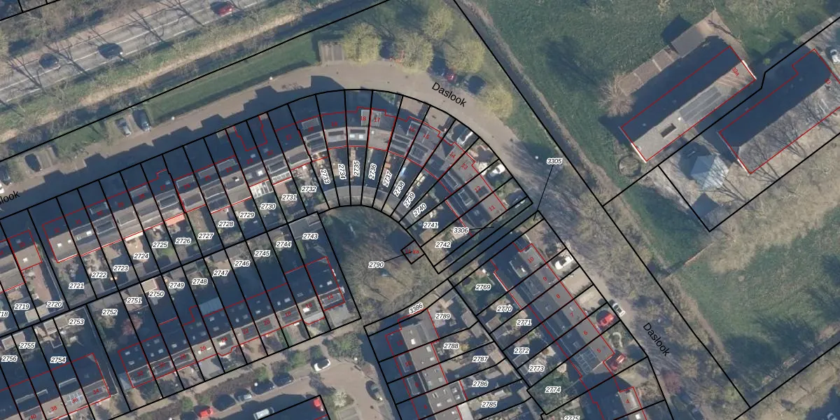 Gebruik de zoekbalk of klik op een perceel om informatie over het perceel te bekijken.