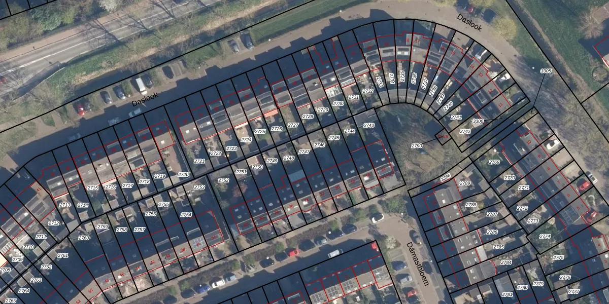 Gebruik de zoekbalk of klik op een perceel om informatie over het perceel te bekijken.