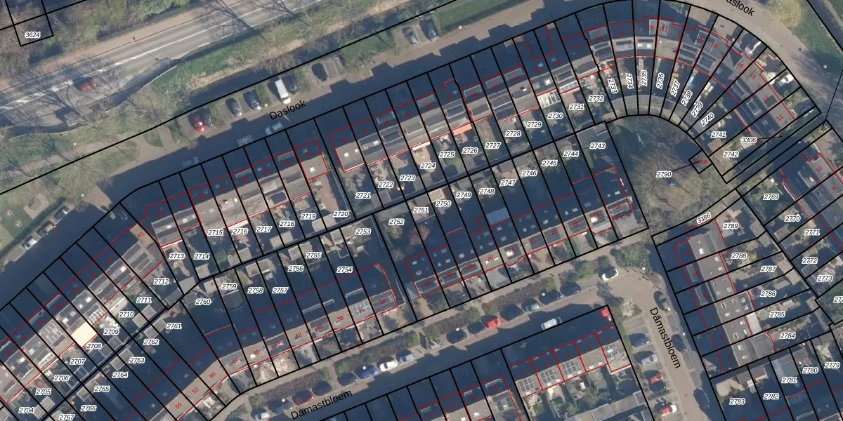 Gebruik de zoekbalk of klik op een perceel om informatie over het perceel te bekijken.