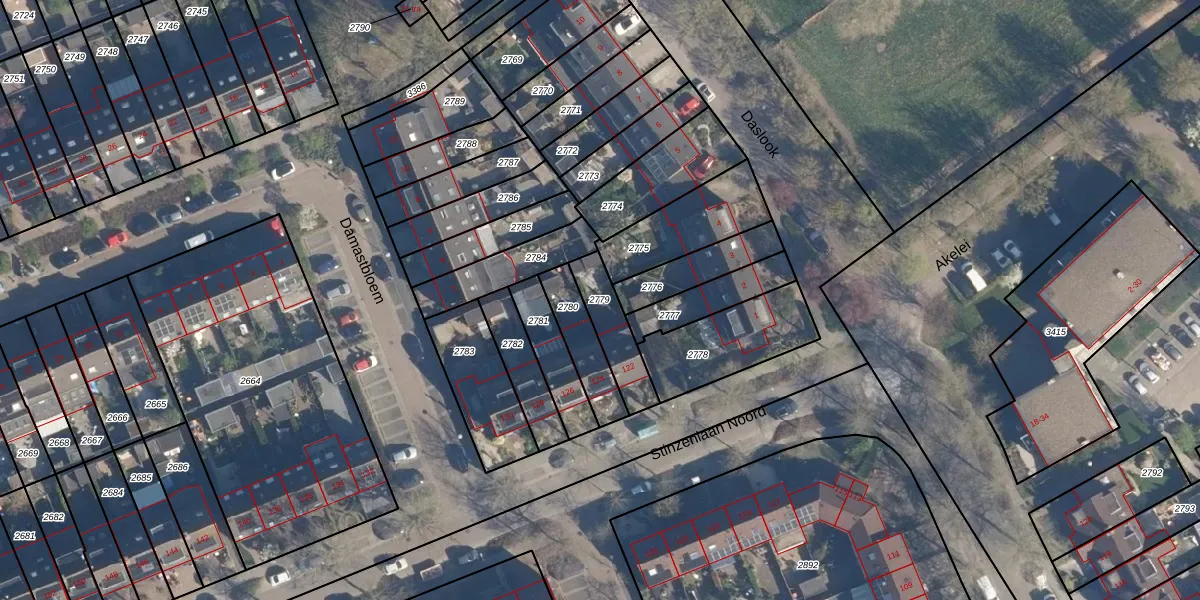 Gebruik de zoekbalk of klik op een perceel om informatie over het perceel te bekijken.