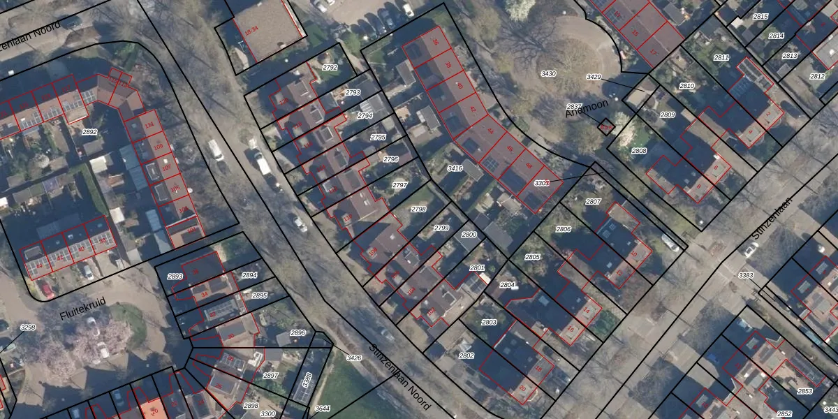 Gebruik de zoekbalk of klik op een perceel om informatie over het perceel te bekijken.
