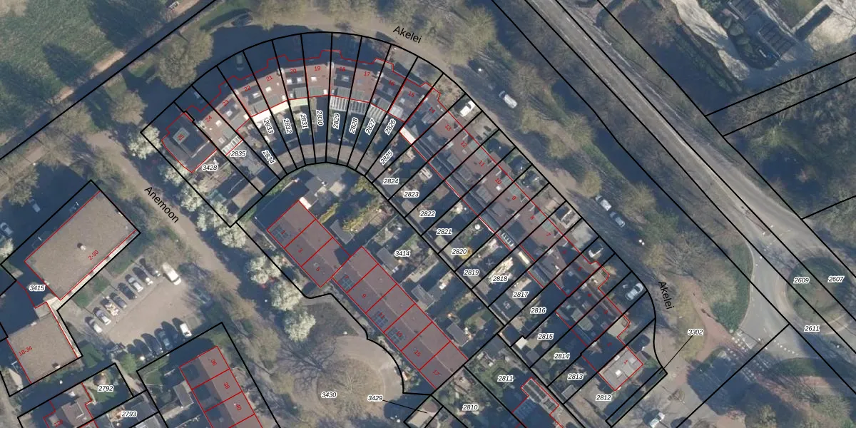 Gebruik de zoekbalk of klik op een perceel om informatie over het perceel te bekijken.