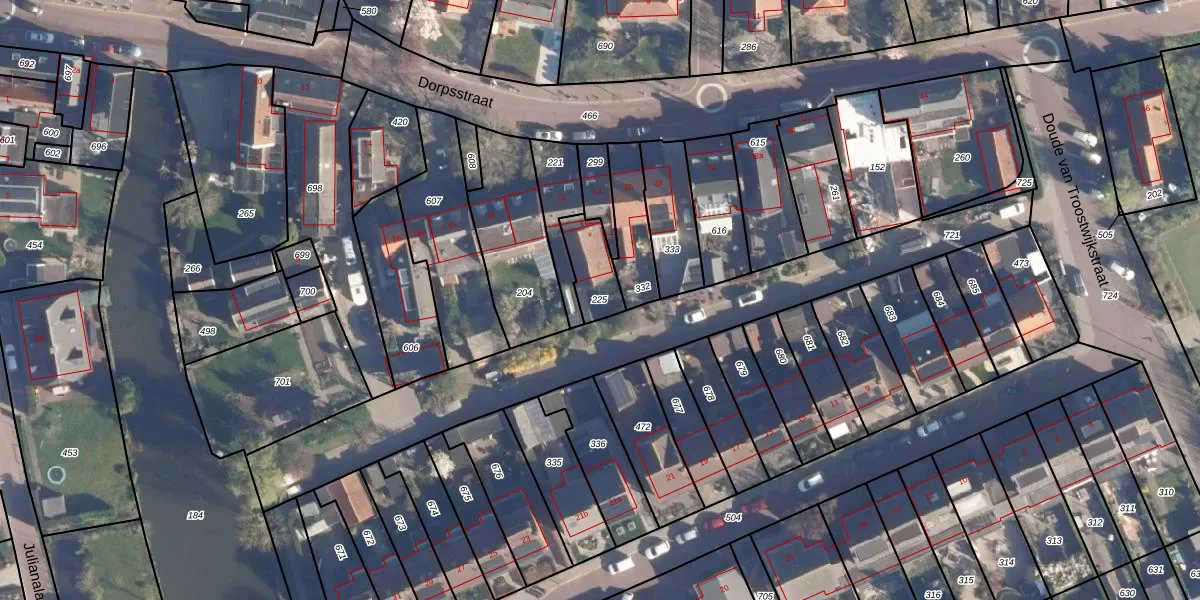 Gebruik de zoekbalk of klik op een perceel om informatie over het perceel te bekijken.