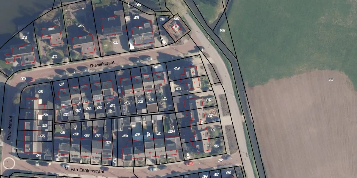 Gebruik de zoekbalk of klik op een perceel om informatie over het perceel te bekijken.
