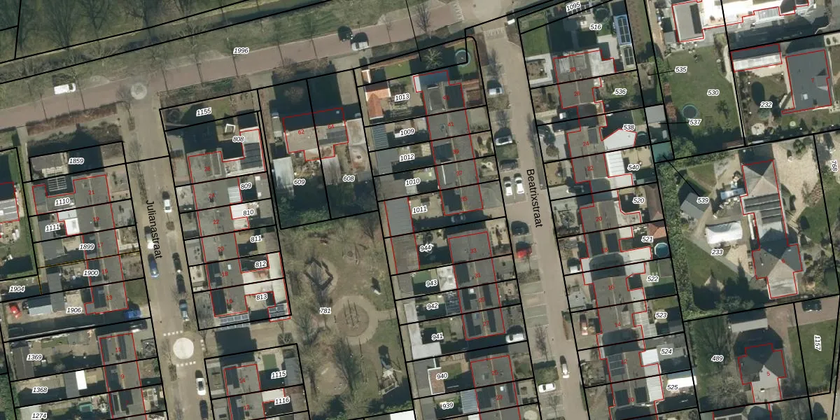 Gebruik de zoekbalk of klik op een perceel om informatie over het perceel te bekijken.
