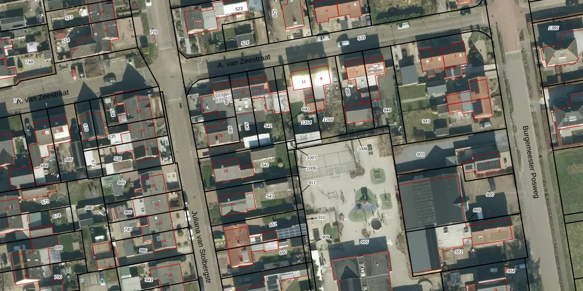Gebruik de zoekbalk of klik op een perceel om informatie over het perceel te bekijken.
